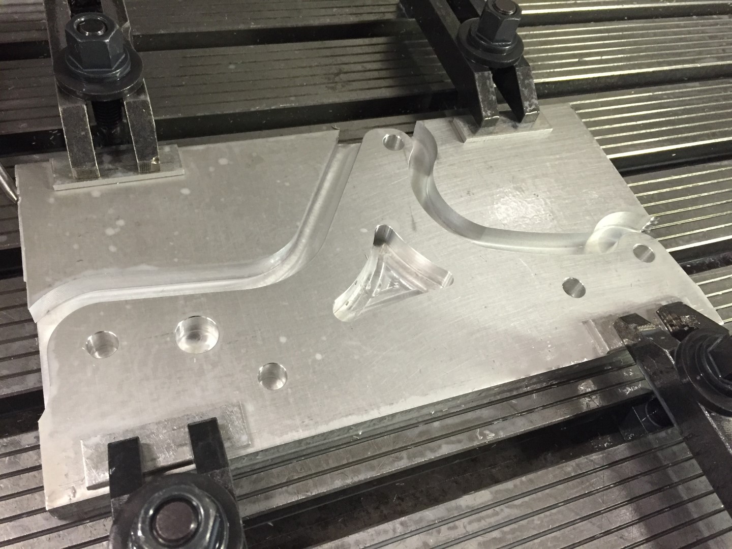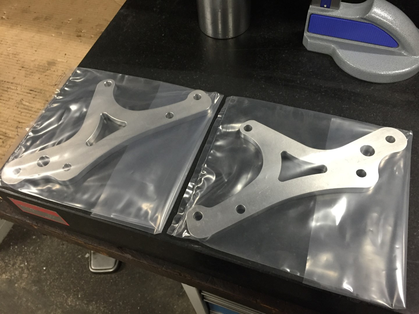 Op basis van een aangeleverd 3D model, twee motorsteunen gefreesd voor een quad.