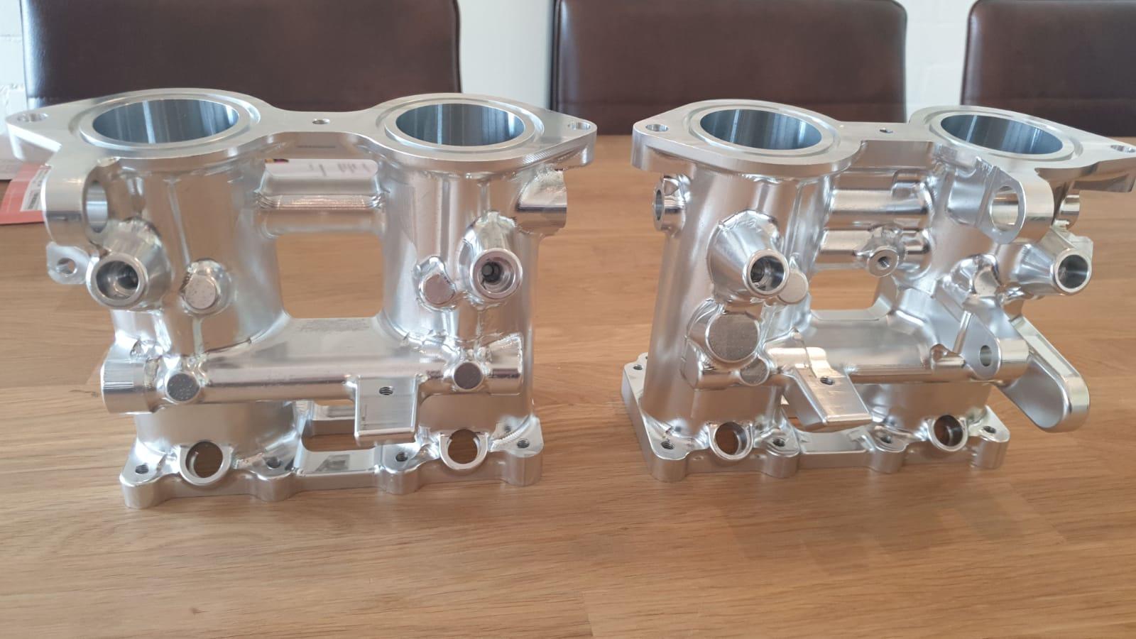 De gasklephuizen (throttle bodies) zijn vervaardigd uit aluminium en na productie gemonteerd op een rally-preprepareerde M3 en met succes getest op de dyno.
